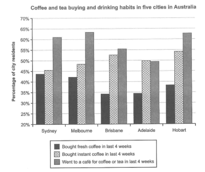 including Sydney, Melbourne, Adelaide,Brisbane,Hobart. Overall,most of the people like to go to the cafe to drink coffee